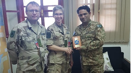 On 12 December, MINURSO Force Commander Maj. Gen. (Pak. Ar.) Zia Ur Rehman received at Mission HQ a delegation of the Royal Swedish Armed Forces, comprising Lt. Col. (Swe. Ar.) Elisabeth Skoglund and Major (Swe. Ar.) Anders Berg. The delegation met the Swedish military observers serving at the Mission and visited MINURSO installations on the field.
