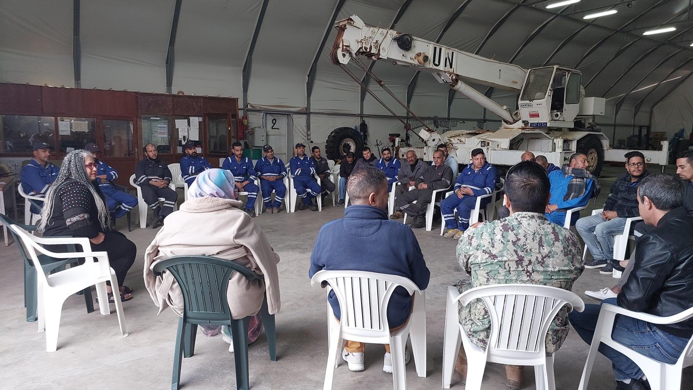MINURSO was thrilled to welcome Dr. Dorothy Morgos, Senior Staff Counsellor from the UN Support Mission in Libya (UNSMIL), who visited the Mission from 25 November to 2 December as part of the implementation of MINURSO’s pilot Integrative Organizational Mental Health Initiative. Throughout her deployment, the Senior Counsellor engaged with the Mission Leadership, held dedicated consultations with all military and civilian staff - including female Military Observers in Laayoune and at the Team Sites, personnel at the Mission’s Logistic Base and at the Tindouf Liaison Office - and delivered various workshops, two of which on Equipping First Responders On Mental Health, addressed to the Bangladesh Medical Unit. Dr. Morgos also provided individual confidential counselling in English and Arabic. The overall feedback from the Mission was very positive with visible impact among UN personnel who are eager to continue supporting the organizational approach to mental health.
