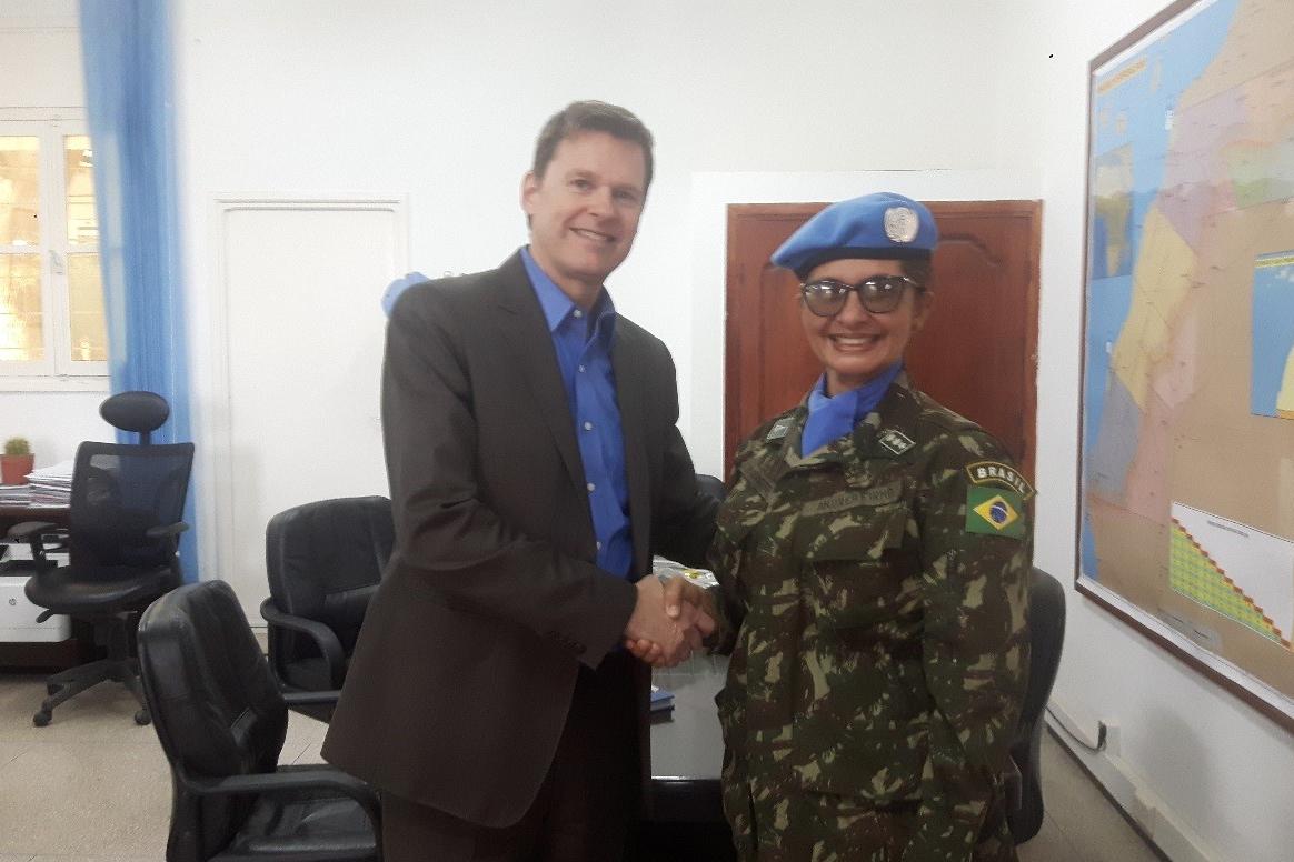 On 25 April 2019, SRSG and Head of MINURSO, Colin Stewart, received in his office in Laayoune (Western Sahara), for a final farewell, Lt. Col. (Br. Ar.) Andrea Lourical Firmo de Araujo. Lt. Col. Firmo de Araujo had just…