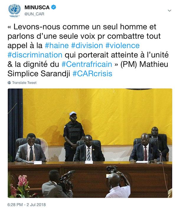 Pour les partenaires impliqués, dont la MINUSCA, à travers sa division des droits de l’homme, l’adoption, le 30 juin 2018, du « Plan national pour la Prévention de l’Incitation à la Discrimination, la Haine et la Violence », constitue une avancée indéniable, au même titre que les engagements pris par les différentes parties prenantes, au rang desquels les media, et les recommandations formulées durant la campagne aux fins de s’attaquer aux causes profondes du mal. Ce plan, il faut s’en féliciter, prend en compte les résolutions pertinentes du Conseil de sécurité, notamment la 2387 de novembre 2017 et la 2399 de janvier 2018.